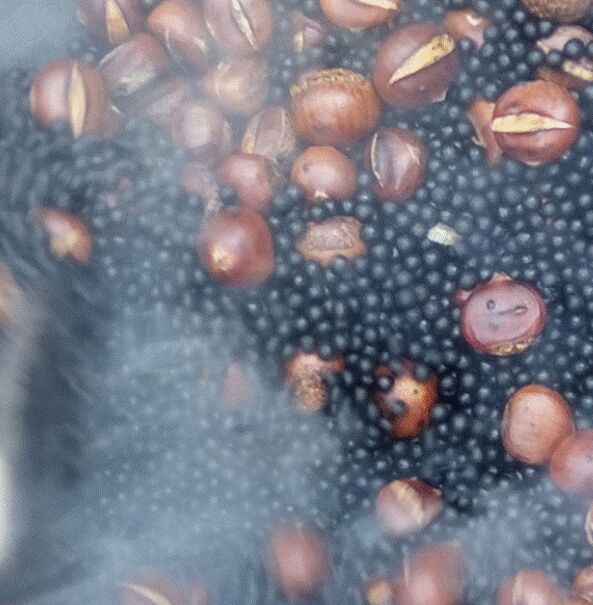 糖炒板栗專用砂(瓷球),相對(duì)于普通砂子來(lái)說(shuō)硬度高、不易碎,炒出來(lái)的栗子色澤亮。經(jīng)過(guò)這兩年的實(shí)踐證明,用瓷球作為炒栗專用砂是客戶不錯(cuò)的選擇,其優(yōu)點(diǎn)顯而易見(jiàn)。一次換砂,全年無(wú)憂!